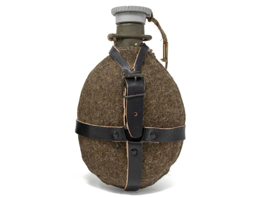Originální polní láhev - čutora, komplet který používá Česká Armáda několik desítek letPolní láhev je kovová, olivově zabarvená s filcovým futrálem se zapínáním buď drukama, zipem nebo šňůrkou ( dle aktuálních skladových zásob ). Kolem celé čutory je kožený řemínek, kterým lze čutora připnout k opasku či batohu.