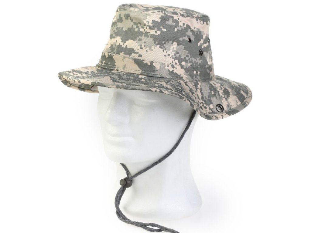 Oblíbený typ klobouku, tzv. Australák s prošitou (přesto však tvarovatelnou) krempou. V maskovacím provedení používaným u U.S. ARMYNa ochranu proti slunci, dešti ... Klobouk je z prošité ( přesto však tvarovatelné ) krempy. Boky lze pomocí druků sepnout k vrchu klobouku. Ve vrchní části klobouku jsou větrací otvory, které brání přehřátí hlavy a nadměrnému pocení. Klobouk je také opatřen nastavovací šňůrkou pod krk.