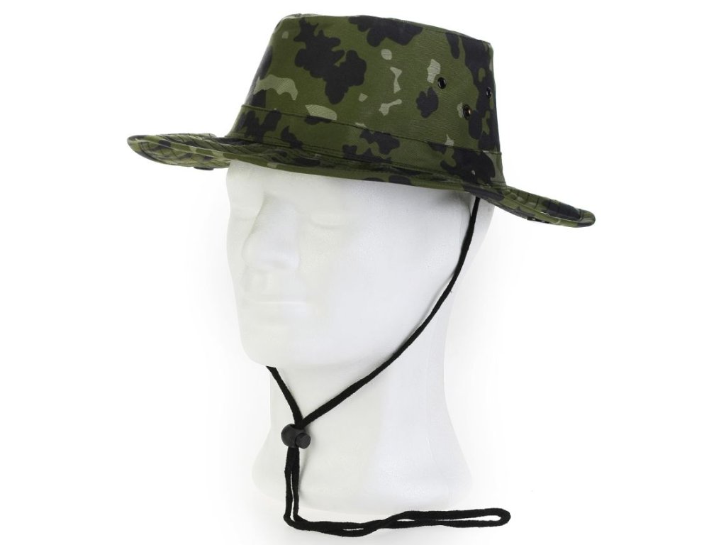 Oblíbený typ klobouku, tzv. Australák s prošitou (přesto však tvarovatelnou) krempouNa ochranu proti slunci, dešti ... Klobouk je z prošité ( přesto však tvarovatelné ) krempy. Boky lze pomocí druků sepnout k vrchu klobouku. Ve vrchní části klobouku jsou větrací otvory, které brání přehřátí hlavy a nadměrnému pocení. Klobouk je také opatřen nastavovací šňůrkou pod krk.