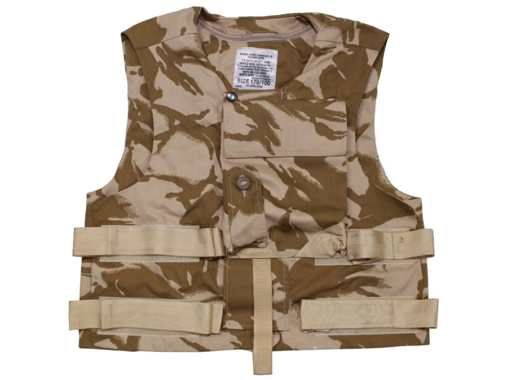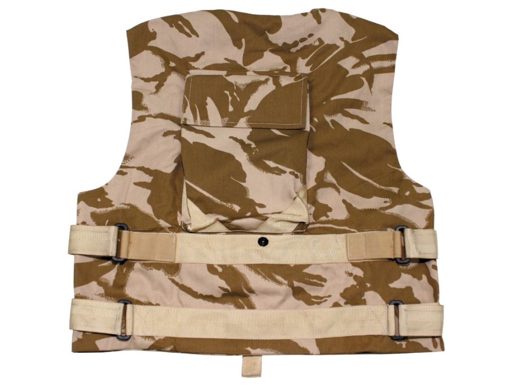 Originální Neprůstřelná vesta ( bez kevlarové výplně ) používaná Britskými speciálními jednotkamiOriginální Neprůstřelná vesta ( dodávaná bez kevlarové náplně ) používaná Britskými speciálními jednotkami. Vesta je v maskovacím provedení DPM - Desert, jednou velkou kapsou na zádech a jednou velkou kapsou ve předu na hrudi, s možností upevnění hodnostního označení. Zapínání na dvojitý suchý zips v kombinaci s drukem. Velikost vesty lze libovolně nastavit pomocí oboustranných bočních popruhů.