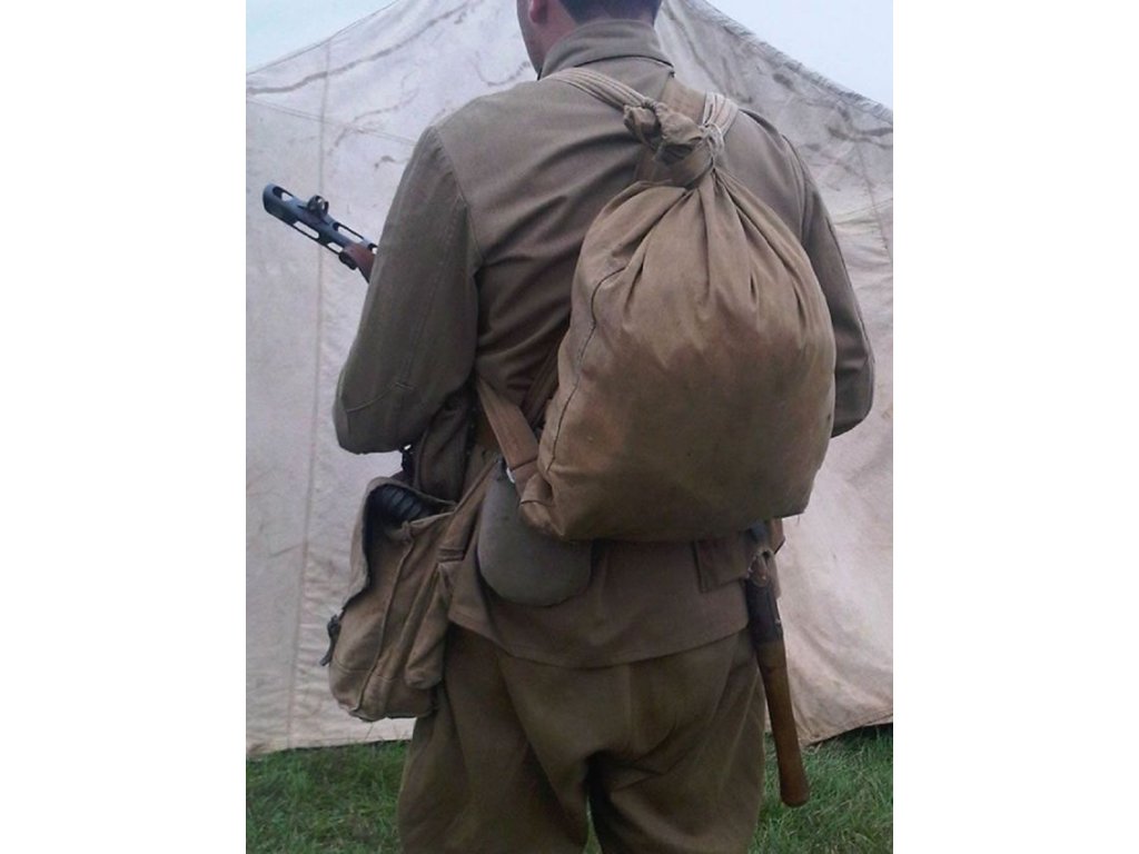 Originální ruský batoh zvaný DAWAI nebo též MESHOKOriginální ruský batoh známý jako DAWAI nebo také MESHOK ( VJECMJESOK ). Jednoduchý lehký plátěný batoh tzv. malá polní, s jednou hlavní komorou a menší kapsou na přední straně batohu. Po stranách batohu jsou umístěny řemínky pro uchycení další výstroje. Jednoduché a rychlé otevření batohu - vrch batohu se stáhne a obtočí popruhy pomocí liščí smyčky.