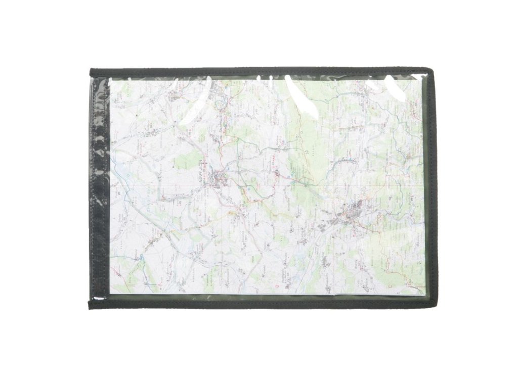 Obal na mapy s průhlednou fólií sloužící k ochraně před nepříznivými vlivy počasí a vlastním opotřebenímVniřní stranu tvoří průhledná fólie, pod kterou lze zasunout mapu a chránit ji před nečistototatami a nepříznivými vlivy počasí. Tento prostor je uzaviratelný pomocí suchého zipu. Na zadní části je přišita praktická šnůrka pro případné nošení na krku.