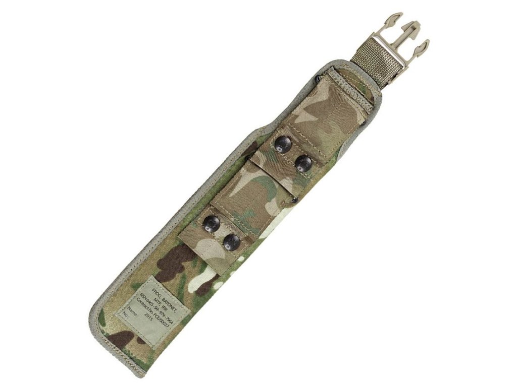 Originální pouzdro na bojovou mačetu nebo bajonet, používané Britskou ArmádouPouzdro je o velikosti cca 35cm, je určeno pro bojovou mačetu nebo bajonet, vhodná však pro jakýkoli ostrý předmět tzn. nůž atd.. Možnost uschovat až 24cm dlouhou čepel 6cm širokou, popřípadě i nůž s vlastním pouzdrem. Vnitřní část je zesílena plastovou vložkou proti proříznutí. Zezadu je pouzdro opatřeno zapínámím, pro buď opasek orig. Brit PLCE popř. je možno upevnit k jakémukoli opasku.