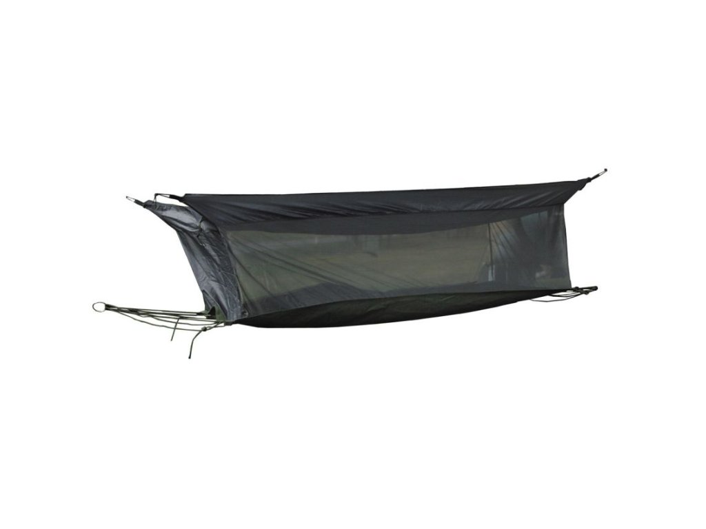 Závěsný vak s moskitiérou, pro přežití v drsné přírodě v jednobarevném olivovém provedeníZávěsný vak je obdobou klasické hamaky ( závěsné sítě ) určené pro přespání v drsné přírodě, avšak mnohem kvalitněji propracován. Jedná se spíše o " stan " s možností připevnění na strom nad zem, je velmi lehký a používá se např. místo karimatek. Při spaní Vás dokonale izoluje od půdní vlhkosti a ochrání před nepříjemným hmyzem a hady. Upevňuje se pomocí několika nylonových popruhů na každé straně. Zapínání z jedné strany na zip.