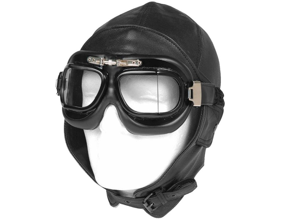 Kožená kukla AVIATOR, stylový doplněk pro majitele auto a moto veteránů- Kuklu lze zapnout nastvitelnou sponou na bradě