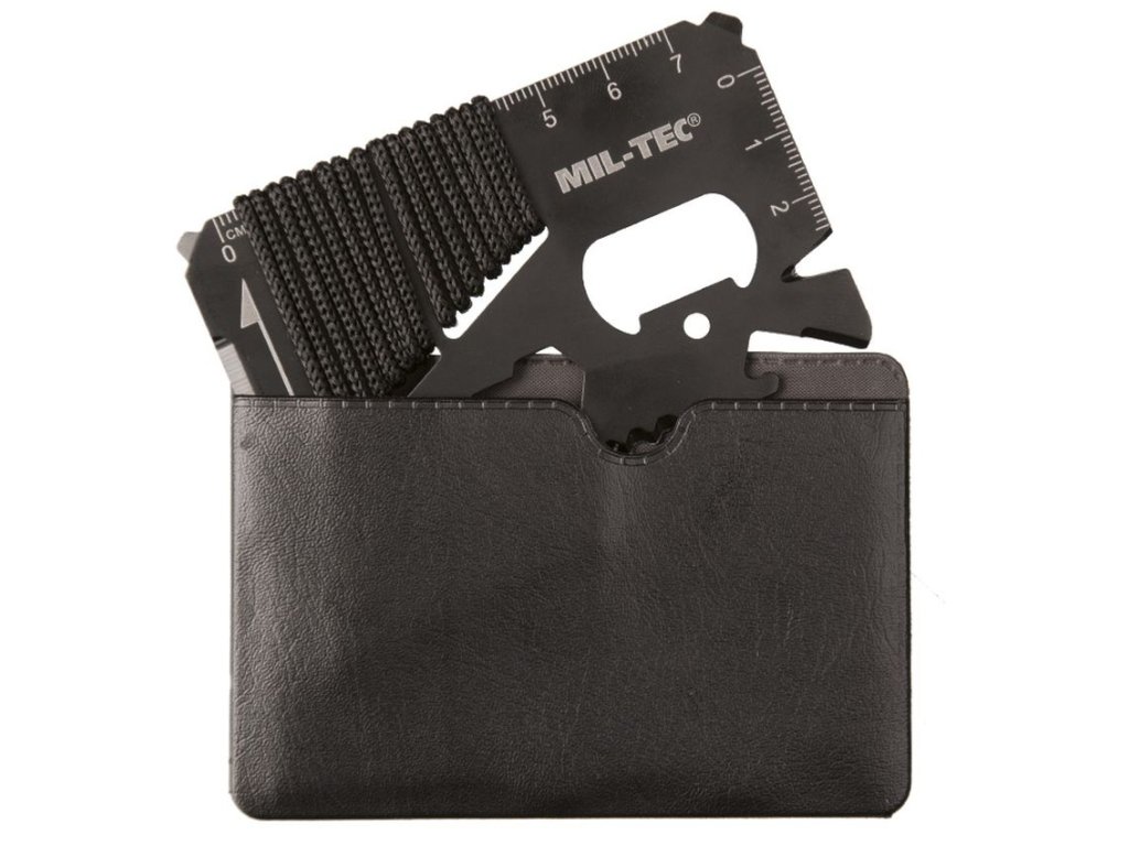Karta s nástroji na přežití s paracordem, takticky černě zabarvenáKarta nástrojů pro přežití Mil-Tec je multifunkční karta vyrobená z odolné nerezové oceli, která kombinuje několik nejpotřebnějších nástrojů. Díky svým malým rozměrům perfektně doplní jakoukoli sadu na přežití.