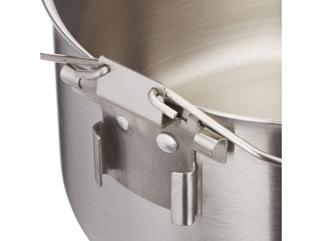 Je vyroben z vysoce kvalitní nerezové oceli 304, přesto se vyznačuje relativně nízkou hmotností. Dvě rukojeti, umístěné mimo těžiště, nabízejí bezpečné držení při přenášení i na tzv. stativu nad ohněm. Kotlíkový hrnec navíc disponuje nožičkami, takže lze postavit přímo nad oheň nebo nad plynový vařič či sporák. Poklička součástí dodávky.