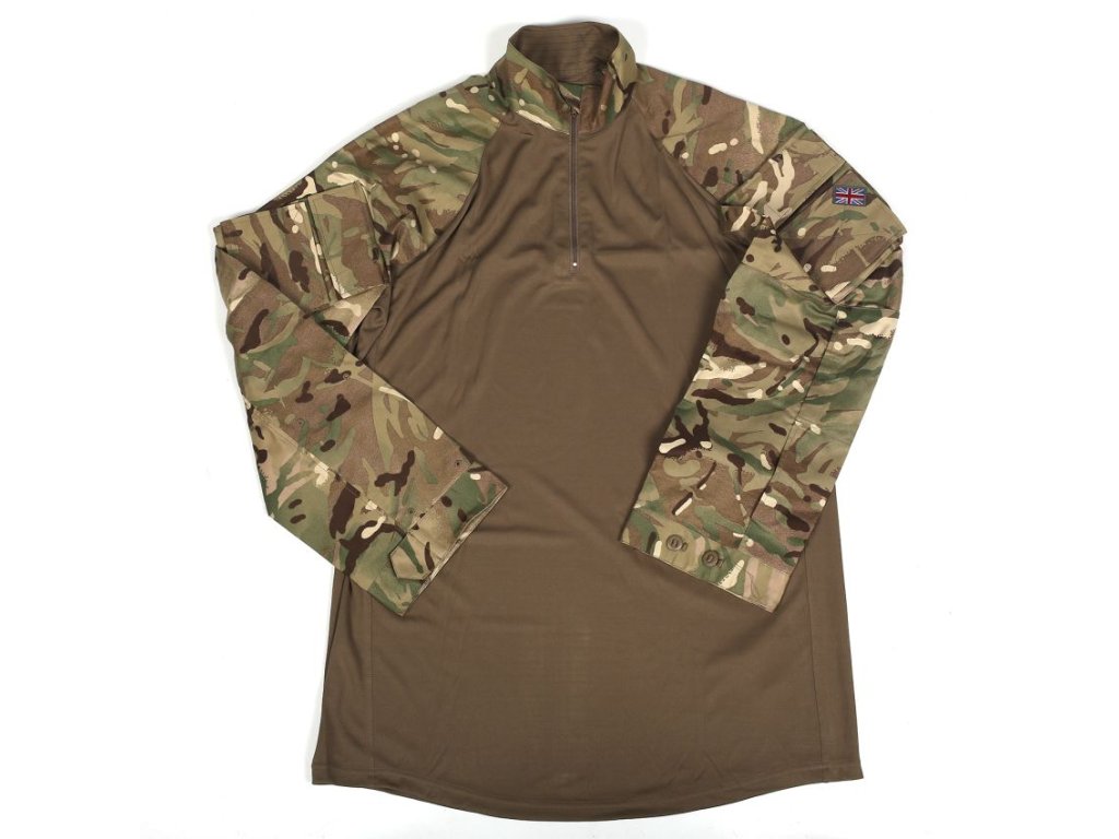 Under Body Armour Combat Shirt - bojový trikot bez vycpávek, Britská armáda v maskování MTP ( Multi-Terrain Pattern )Taktická košile ( neboli také taktické triko ) určeno k nošení pod bojovou vestu. Zatímco rukávy poskytují stejné užitné vlastnosti jako běžná maskovací uniforma, jen doplněné o komfortní a snadno přístupné kapsy na ramenech, trupová část usnadňuje termoregulaci těla ( funkční a prodyšný materiál Coolmax ), saje a odvádí pot od těla a neumožňuje vytvoření mikroklimatu mezi tělem nositele a oděvem. Košile je velmi tenká, pod balistickou vestou vás nijak neomezuje a netlačí. Oproti modelu HOT WEATHER není opatřena vkládacími chráničovými vložkami ( nelze je ani vkládat ), vhodné pro každodenní nošení. Ochranný UV faktor chrání nositele před škodlivým slunečním UV zářením.