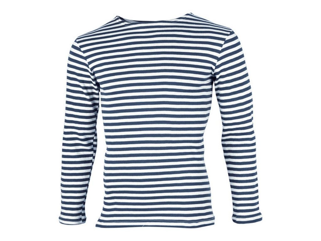 Originální triko s dlouhým rukávem používané Ruským námořnictvemOriginální pruhované námořnické triko. Kombinace bílého a tmavě modrého pruhu. VMF ( Vojenno-morskoj flot ) určeno pro námořnictvo. Příjemná a pevná bavlna - systém dvojí pleteniny. Trika jsou dovezena a vyrobena přímo v Rusku (nejedná se o žádné napodobeniny).