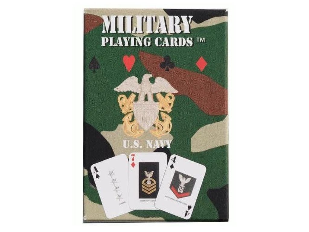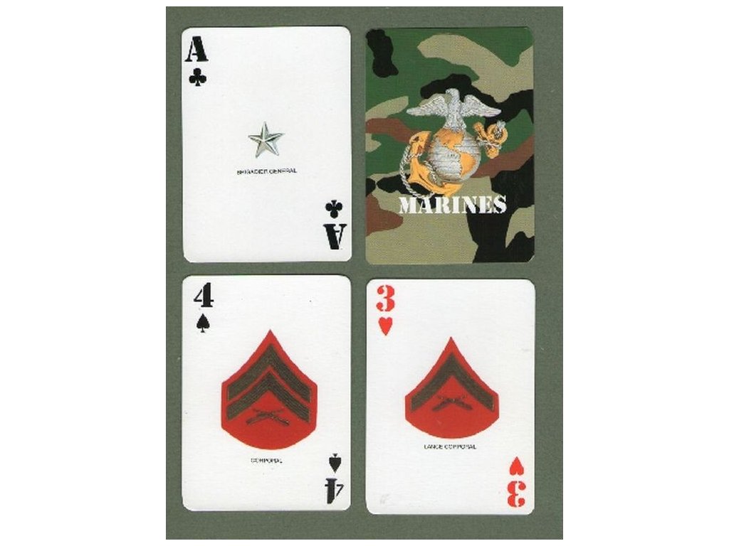 Herní žolíkové karty s vojenskou tématikou, v armádním styluKarty tvoří obrázky hodnostního označení výšivkového i odznakového typu, čím vyšší karta, tím vyšší honost. Vrchní část je kamuflážní - maskáčová.