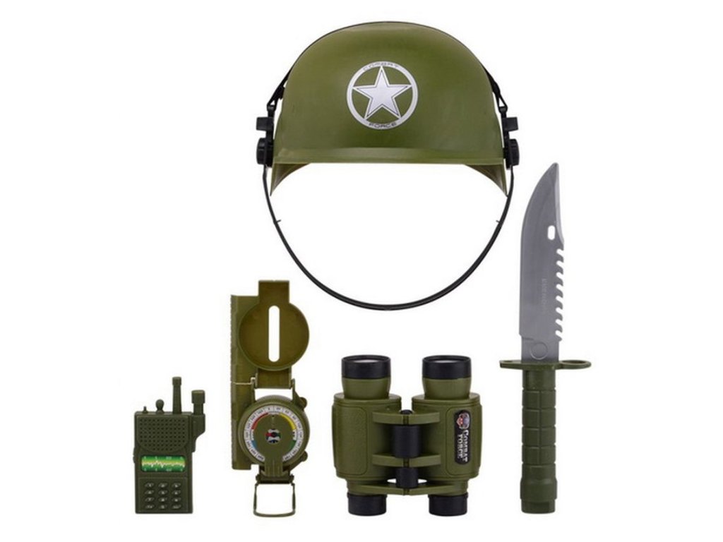 Dětská sada pro malé vojáky, obsahující helmu, dýku, dalekohled, kompas a vysílačku- Určeno pro děti ve věku od 3-6 let, helma bez ochranné funce, nůž není ostrý, doplňky jsou nefunkční