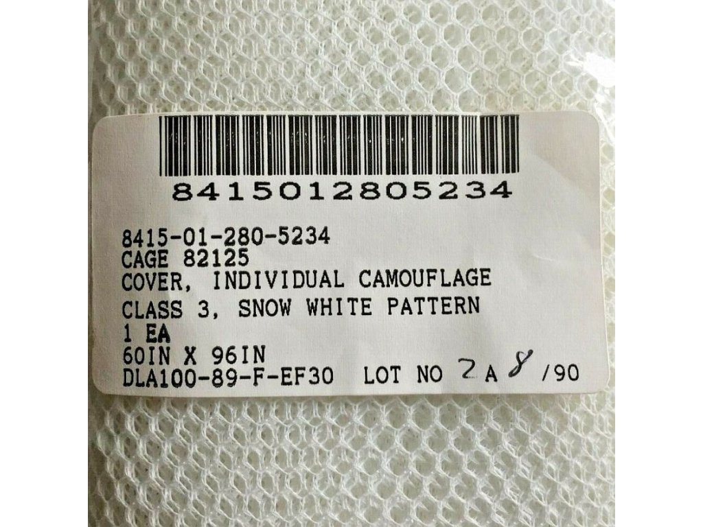 Camo Net Individual Cover, sniper síťka, armádní originál NSN: 8415-01-282-3160, zimní kamuflážArmádní originál používaný u US ARMY, NSN: 8415-01-282-3160. Síťka slouží k maskování odstřelovačů aby splynuli v zimním období s okolím, jsou tímto méně viditelnými pro nepřítele. Lze využít i jako síťka na ryby, pytel na namáčení, slunečník, v létě pak např. jako síťka proti komárům atd...