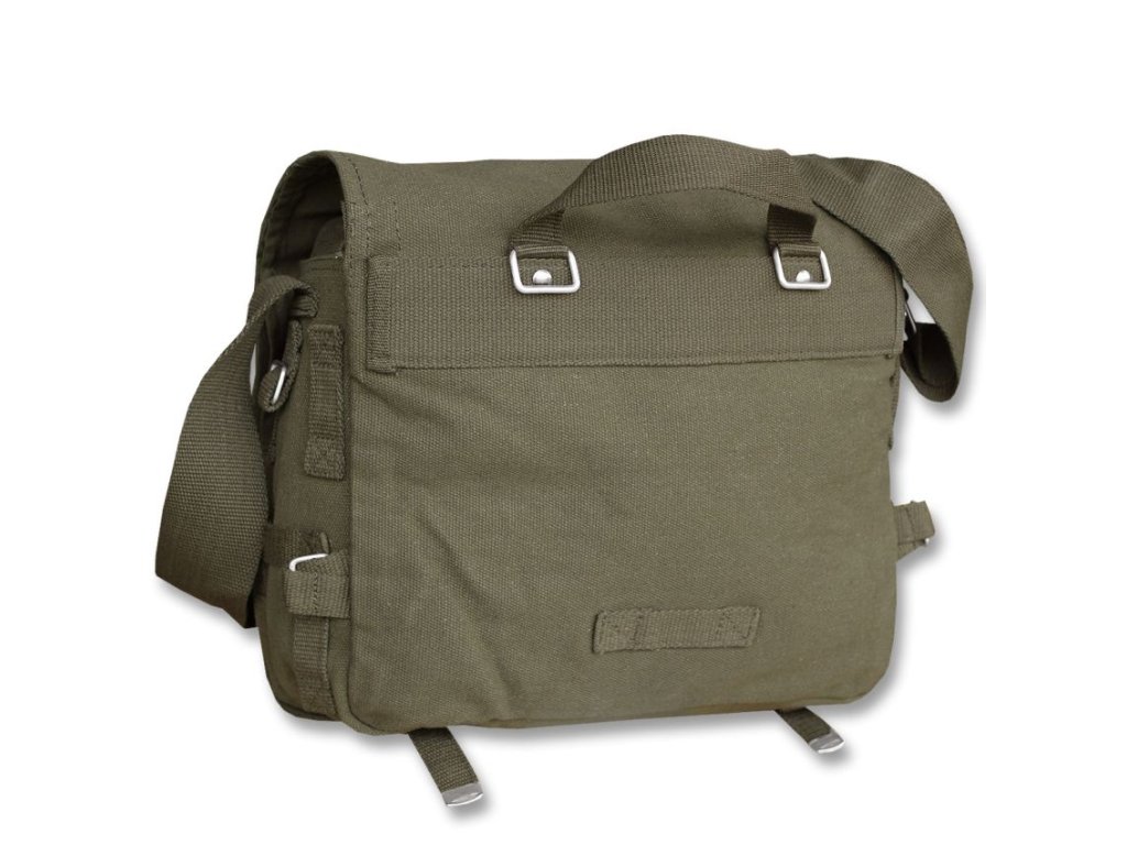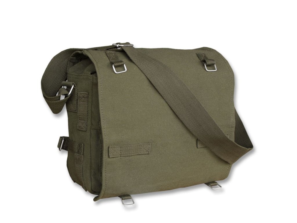 Plátěná taška s možností přehození přes rameno zvaná též " Chlebník " o velikosti 33x23x11cmBrašna je vyrobena ze 100% bavlny, lze ji nostit přes rameno. Obsahuje tři vnitřní kapsy a jednu vnější kapsu pro uložení potřeb. Celkově se brašna zapíná pomocí popruhů a kovových spon.