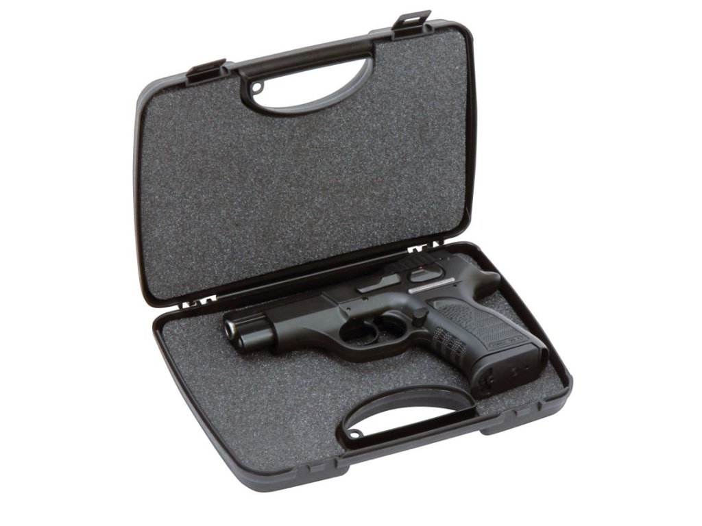 Plastový kufr na krátkou zbraň vyplněný molitanemKufry jsou vyrobeny z plastu, opatřeny zacvakávacími packami bez zámku. Kufr však je opatřen očkem pro případné uzamčení pomocí malého visacího zámku. Vnitřní část kufru je opatřena výstupkovým molitanem, který zabraňuje poškození zbraně při přepravě popř. uskladnění.