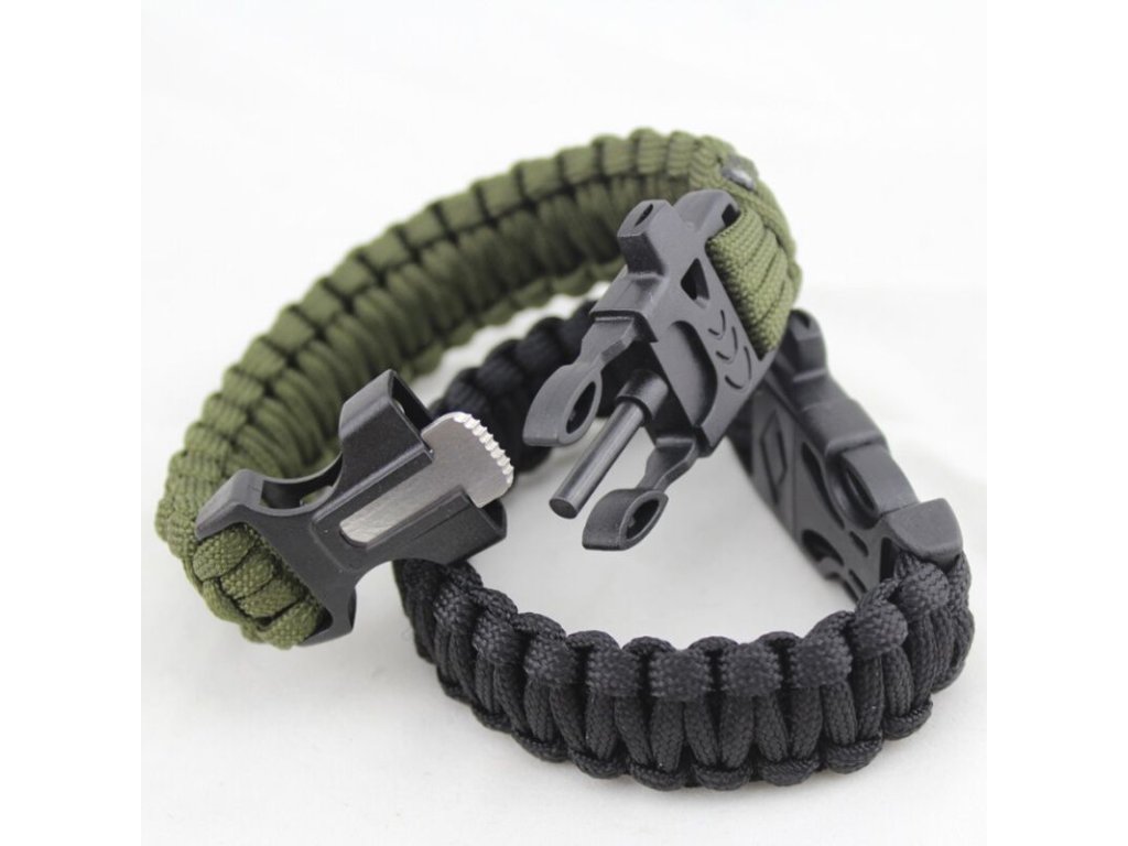 Náramek pro přežití, spletený z pevné padákové šňůry s funkcí píšťalky a křesadlaNáramek pro přežití Vám umožní mít u sebe nepřetržitě pár metrů padákové šnůry ( cca 213cm ), kterou lze použít v případě nouze s nesčetným množstvím aplikací pro přežití. V podstatě každý centimetr vašeho zápěstí průměru se rovná přibližně 15cm padákové šňůry. Zakřivené boční spínací spony, verze pro maximální pohodlí, komfort a pevnost. Možno nosit na ruce i noze. Ve sponce lisovaná píšťalka a křesdalo na rozdělávání ohně.