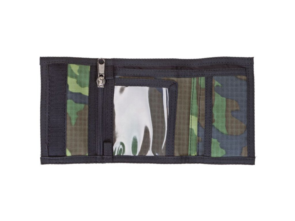 Kvalitně zpracovaná nylonová maskáčová peněženka se zavíráním na suchý zipNylonová peněženka v maskovacím vzoru " AČR vz.95 ", se zavíráním na suchý zip. Peněženka má zvláštní přihrádku na kovové i papírové mince, přihrádku s fólie na fotky + další praktické přihrádky ( na kreditní karty, doklady...). Praktické je pak poutko, pomocí kterého je možno připevnit peněženku k poutku kalhot, batohu atd...