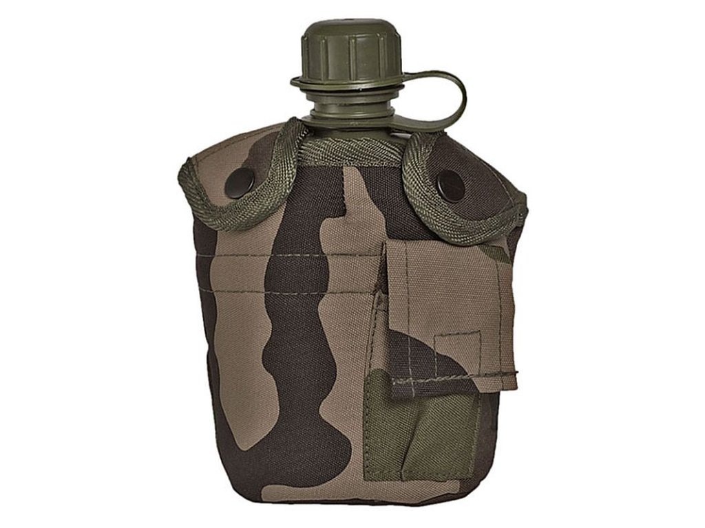 Přesná kopie polní láhve používané v Americké Armádě s Alu pitítkem a maskáčovým potahem 600 x 600 D "Francie"Polní láhev je vyrobena z plastu olivové barvy, má šroubovatelný uzávěr a nylonové pouzdro odolné proti oděru ( materiál 600x600D Oxford Nylon ). Vnitřní část pouzdra je podšitá vláknem imitujícím kožešinu ( 100 % Polyurethan ), který mimo jiné služí i k udržení nápoje v původní teplotě ! Uchycení k opasku pomocí dvou "alice" klipů, které jsou součástí dodávky. Součástí je také praktické pitítko ( materiál ALU - hiník ), které je vsazeno v pouzdře.