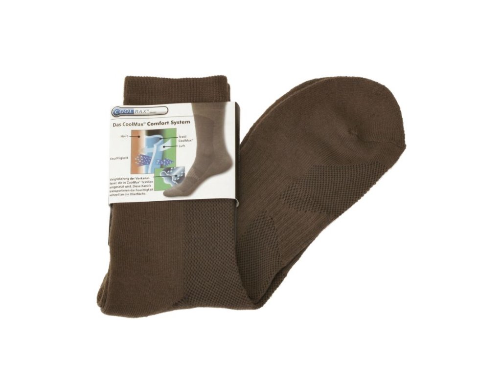 Funkční ponožky COOLMAX® comfort system, v jednobarevném olivovém provedeníLehké sportovní ponožky určené pro aktivní činnosti, obsahují vlákno coolmax, zaručují vysokou prodyšnost a vyjímečnou schopnost odvádět vlhkost od pokožky. Ponožky jsou vhodné do velmi teplého, studeného a vlhkého prostředí.