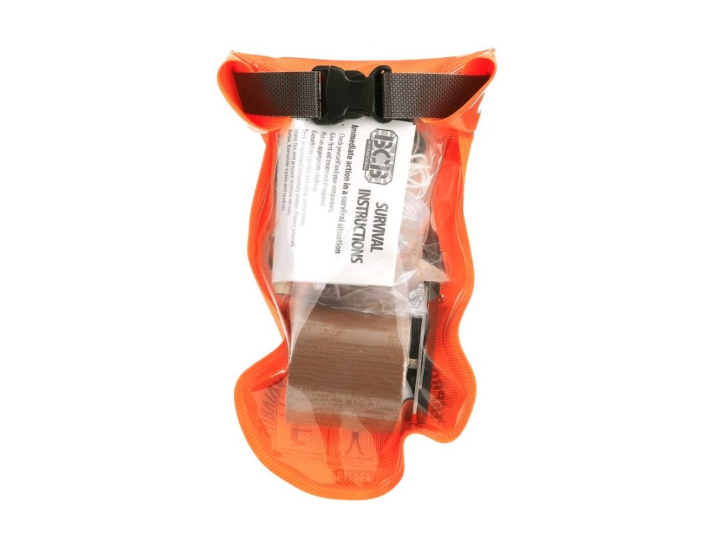 Vodotěsná záchranná sada určená pro pěší turistiku a jiné outdoorové aktivity, sada obsahuje až 28 základních položekTato vysoce kvalitní sada Waterproof Survival Kit od BCB je lehká a obsahuje až 28 základních položek. Ideální pro pěší turistiku a jiné outdoorové aktivity. Sada je dodávána ve vodotěsném pouzdru s utěsněním pomocí rolovacího uzávěru ( obdobně jako u vodáckých vaků ). Vak disponuje provlíkacím okem, možnost upevnění na opasek, pomocí spony na výstroj či nošení na provázku na krku. Vak je z jedné strany transparentní ( lepší přehlednost uložení obsahu ) a z druhé strany signálně oranžový s návodem pro signalizaci v nouzi.