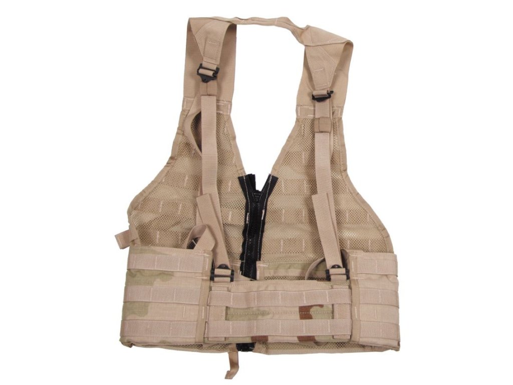Originální taktická vesta MOLLE II v pískovém maskování, používaná u U.S. ARMYVesta je vyrobená ze 100% nylonu, vysoce odolnému proti oděru. Je opatřena nesčetným množstvím popruhů pro libovolné připevňování taktické výstroje ( lze upevňovat i neoriginální součástky, pomocí alice klipů atd... ). Díky polstrovanému pásu se vesta příjemně nosí, ikdyž je váha nesené výstroje vyšší. Ve vnitřní části jsou skryty navíc dvě kapsy pro uložní dalších doplňků ( mapy... ). Zapínání pomocí plastového zipu v kombinaci s popruhy se sponami.