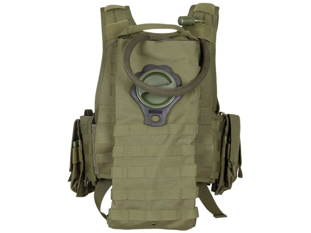 Nylonová taktická vesta MODULAR SYSTEM s přídavnými kapsami a hydratačním vakemTato Taktická vesta je vybavena MOLLE systémem sumek. Používá své vlastní sumky, nicméně je kompatabilní s jakýmikoli sumkami pro molle systém. Sumky jsou zapínatelné pomocí druků. Na vestu je lze připínat z obou částí, ale i z boků dle momentální potřeby.
