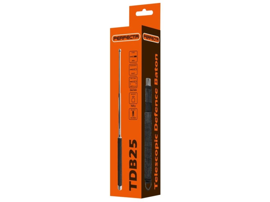 Kvalitní kovový teleskopický obušek v kaleném provedení, kompaktní sebeobranný nástroj, ideální pro osobní ochranu i profesionální použitíTeleskopický obušek UMAREX Perfecta je spolehlivý a kompaktní sebeobranný nástroj, ideální pro osobní ochranu i profesionální použití. Díky robustní ocelové konstrukci poskytuje vysokou odolnost a účinnou obranu.