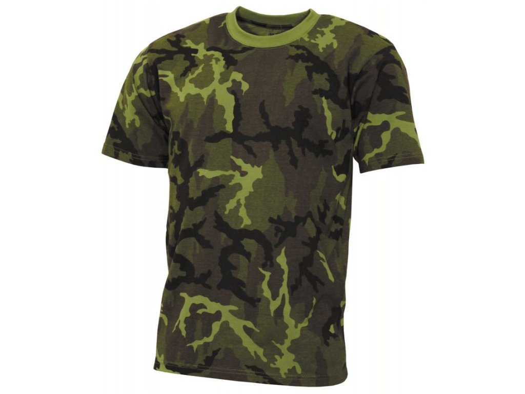Dětské maskáčové bavlněné triko Single Jersey s krátkým rukávem US-StyleDobrá savost, jednoduchá údržba. Vyztužený kulatý výstřih. Triko je v totožné kamufláži jako na vyobrazené fotografii.