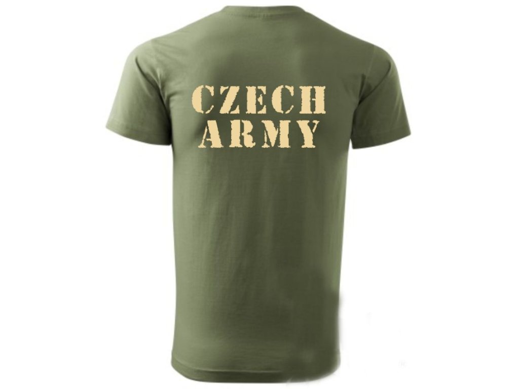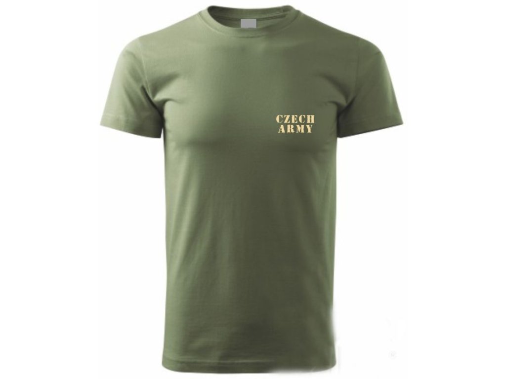 Velmi kvalitní olivové tričko s potiskem ( ve předu na tričku je na levém prsu malý nápis a vzadu velký nápis ). Dobrá savost, jednoduchá údržba.
